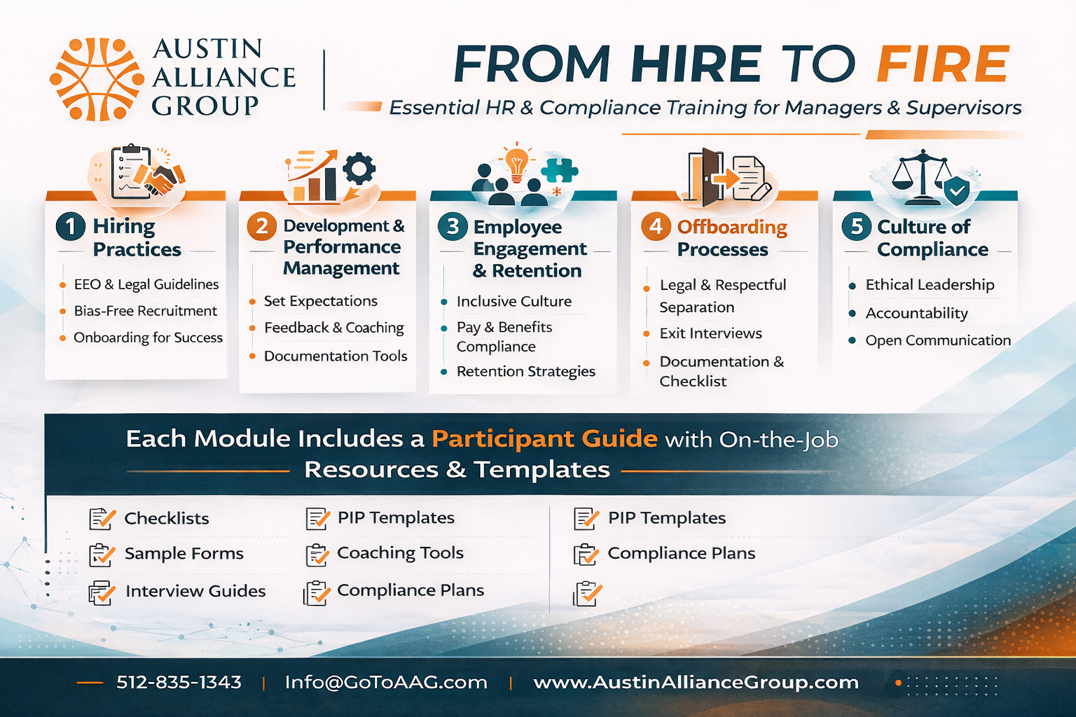 - All course materials, including slides, recordings, and handouts, are the intellectual property of Austin Alliance Group, LLC.